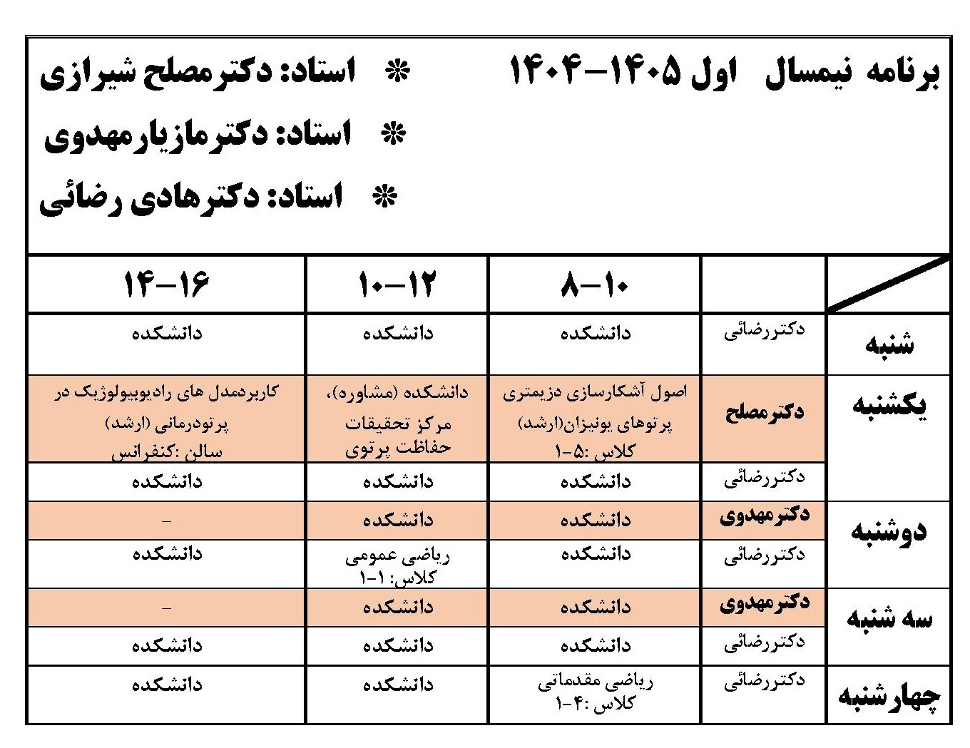 برنامه هفتگی استاد