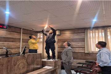 نصب لامپ‌های فوق کم‌مصرف و با بازده نوری بالا در سالن بهار دانشکده پیراپزشکی شیراز