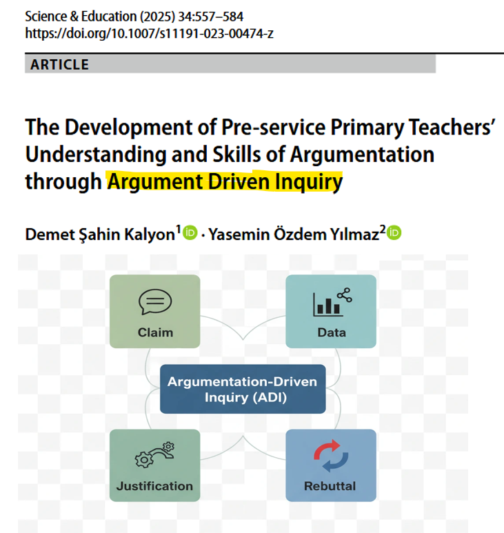 از مقاله تا ایده (3) از کلاس تا مقاله 3 — ADI مدل Argument‑Driven Inquiry (ADI): ادعا، داده، توجیه، رد ادعای طرف مقابل مطالعه روی ۵۷ دانشجو‑معلم علوم ابتدایی؛ طرح پیش/پسآزمون آزمون AT و جهش نمره: 12.07 ← 15.95 (اثر آماری معنادار) یافتههای کیفی: گذار استدلالها از ضعیف به قوی؛ بهبود معنادار در شواهد، توجیه علمی و رد استدلالهای جایگزین