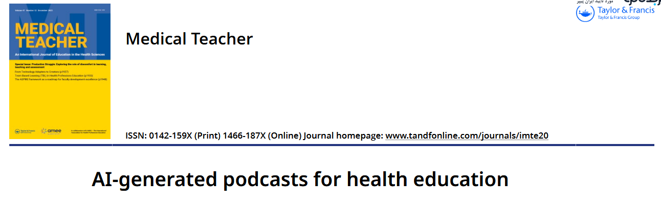 از مقاله تا ایده (4) اگر یک مقالهٔ ISI را به هوش مصنوعی بدهیم آیا میتواند پادکستی بسازد که با کار استاد دانشگاه رقابت کند؟ یک مقالهٔ تازه از Medical Teacher (2025) با یک طراحی پژوهشی غیرمنتظره و یک پیام آموزشی که مستقیم به کلاسهای ما ربط دارد… چرا بعضی از پادکستهای این مطالعه «عمداً با خطا» ساخته شدهاند؟ و این چه ربطی به تقویت تفکر انتقادی دانشجو دارد؟ پیام کلیدی: پادکستهای AI جایگزین استاد نیستند اما ابزار قدرتمندی برای Spot‑the‑Error Activities و تقویت تفکر انتقادیاند.