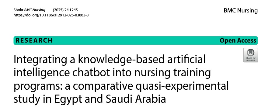 از مقاله تا ایده (5) چرا پژوهشگران بهجای ChatGPT سراغ چتباتهای مبتنی بر دانشِ تأییدشده رفتند؟ یک مقالهٔ بسیار تازه از BMC Nursing (2025) با یک طراحی شبهتجربی بینکشوری کلمات کلیدی: Quasi Experimental Study: مطالعهٔ شبهتجربی Active Recall: یادآوریِ فعال